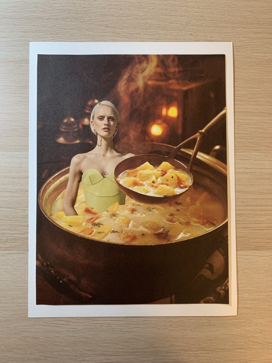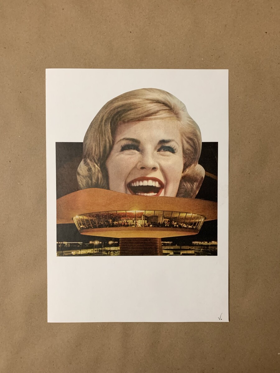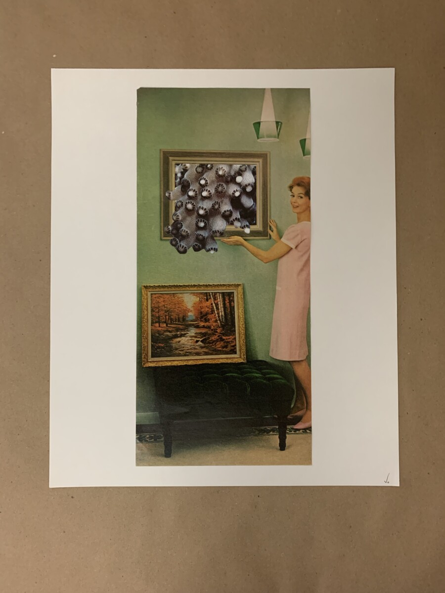 Creating collages, to me, is the visual art equivalent of free jazz – piecing together unexpected, unique visual stories. I also find them to be relaxing and therapeutic, like puzzle solving and the solution reveals itself in a sudden moment of connecting images. It doesn’t always go smoothly and sometimes they still seem “unsolved,” but when they come together in a satisfying way it’s pure enjoyment.